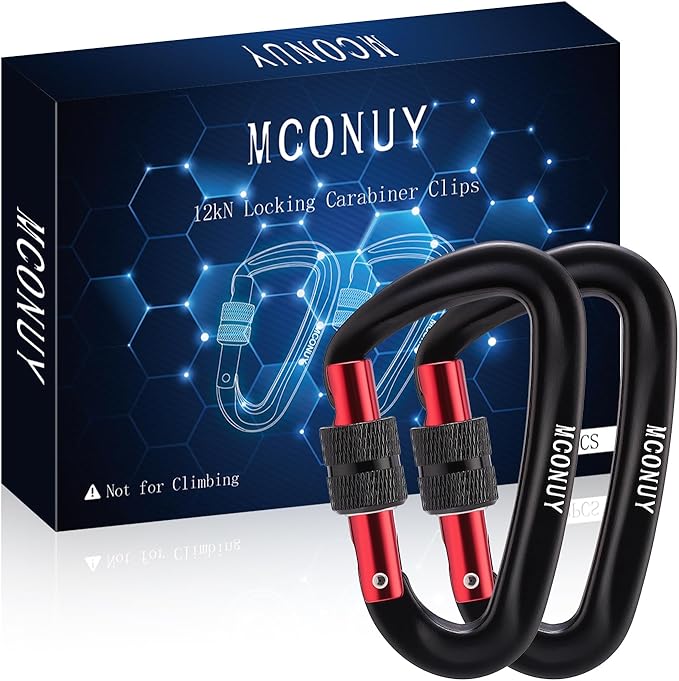 - MCONUY small locking carabiner clips, with D-shaped design, are suitable for camping, hiking, hammocks, swings, dog leashes, or use as a key ring.