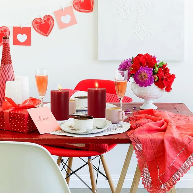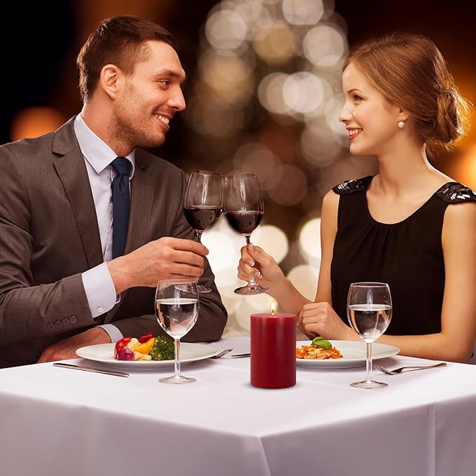 - Romantic Atmosphere: These 2.75inch by 4inch solid red colored pillar candles are perfect for home décor, and wedding to enhance any event with its warm light and bring upon a sense of harmony and romance.