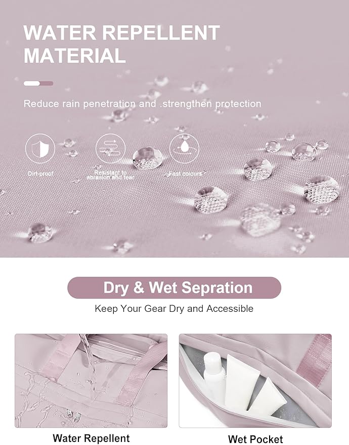 - 【Waterproof & Wet Pocket】Crafted from high-density waterproof material, the gym duffle bag keeps contents dry. It features a separate compartment for wet items like clothes or towels.