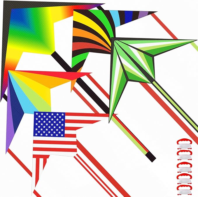 - Delta Kites 5 Pieces Set: A total of 5 different colorful kites, the colorful design can attract children's attention, add a bright landscape in the sky, and add a touch of color to outdoor games. Perfect for both adults and kids, this kite is easy to fly and stable in light winds, even for beginners. Kites for kids ages 4-8 8-12.