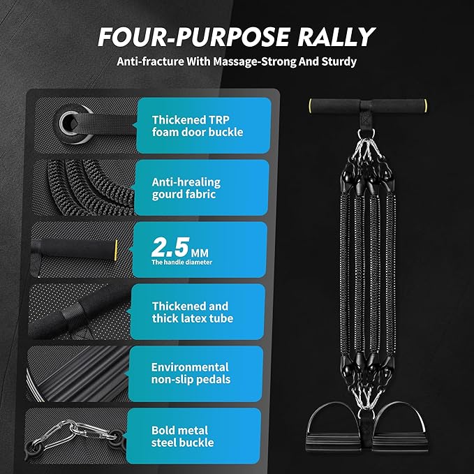 - Easy to Carry - Our multi-functional fitness pedal puller resistance bands are compact and lightweight, so you can work out anytime, anywhere. Stay in shape consistently at home, in the gym or on the go. Ideal for yoga, pilates, stretching, strength training and weight lifting, it is the ideal home gym equipment.