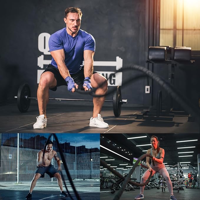 - Exercise Rope with NON-SLIP Design Handle: The handle is designed to protect your hands with an added non-slip design that provides a firm grip when you are using the battle rope