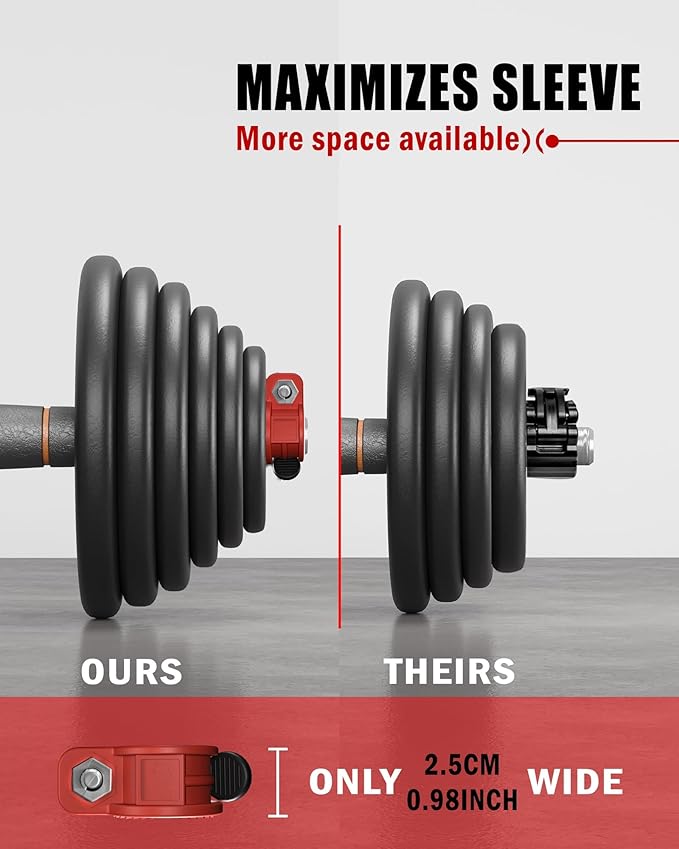 - SAVE TIME:Featuring quick release design, Quick release weight locks are the best way to change weights quickly.olympic bar collar offer easy loading.It takes less than 5 seconds to install,save time,The handle is bulletproof and securely locked,so you can focus on your lift.