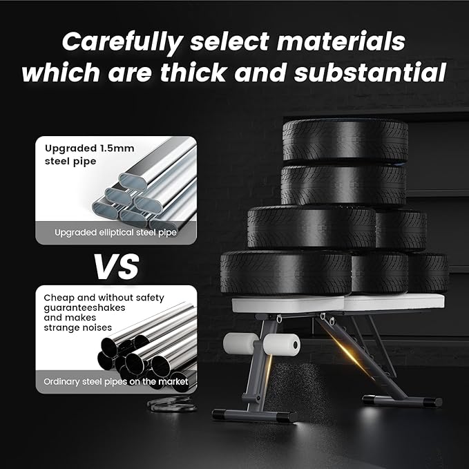 - 【Great Choice for Home Gym】 This weight bench is an ideal pick for beginners with complete features; Easy to assemble and is compact to transform every corner into your home gym