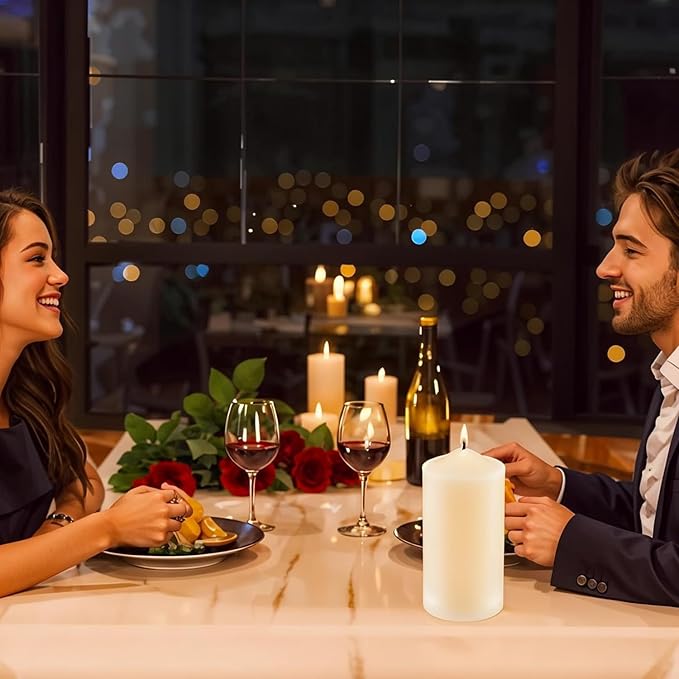 3×6 Ivory Pillar Candles Set of 6 Unscented Handpoured Weddings, Home Decoration, Restaurants, Spa, Church Smokeless Cotton Wick - Ivory 450 Hour