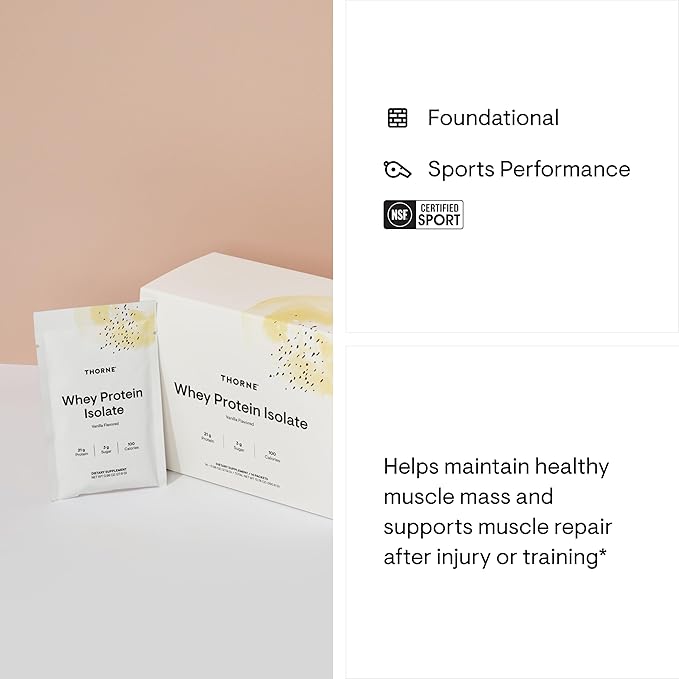 THORNE - Whey Protein Isolate - 21 Grams of Easy-to-Digest Whey Protein Powder - NSF Certified for Sport - Vanilla - 13.79 Ounces - 14 Packets