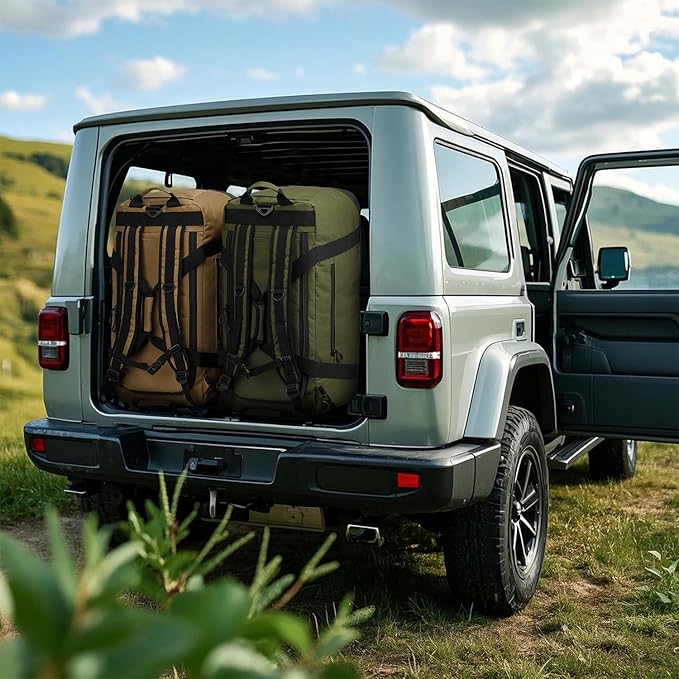 - Durable Heavy-duty Travel Duffel Bag: Made of high-quality 900D fabric, with a waterproof PVC at the fabric, the double-layer fabric is more sturdy and scratch tear resistant. The stitching and stress points have been reinforced, and the 10 # main zipper is more flexible and sturdy, thickened buckles enhance durability, Premium materials making this camping duffle bag long-lasting.