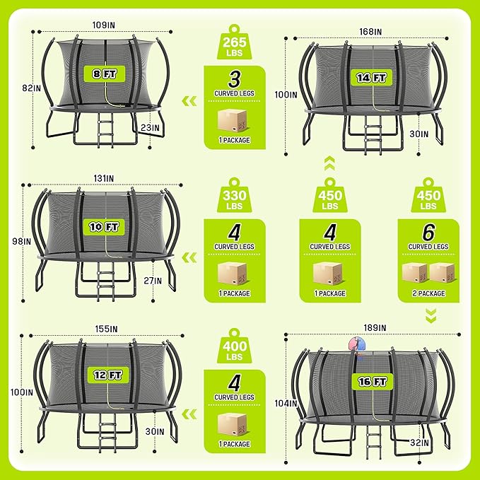 - Your Kid's Joy and Security – Our Top Priority: Designed with your child's safety in mind, our trampolines feature curved leg tubes and heavy-duty galvanized steel, ensuring a smoother, more balanced bounce. Safety-first design, meeting ASTM F381-16 global standards.