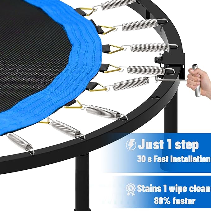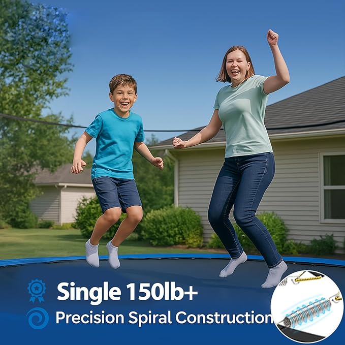 - NOISE-OPTIMIZED PERFORMANCE: Patented conical coils reduce metal-on-metal sound by 60% compared to linear springs. Precision-tuned rebound system provides child-safe cushioning (3.2G impact reduction) + adult-grade thrust (450 lb. weight capacity) - perfect for backyard play or cross-training