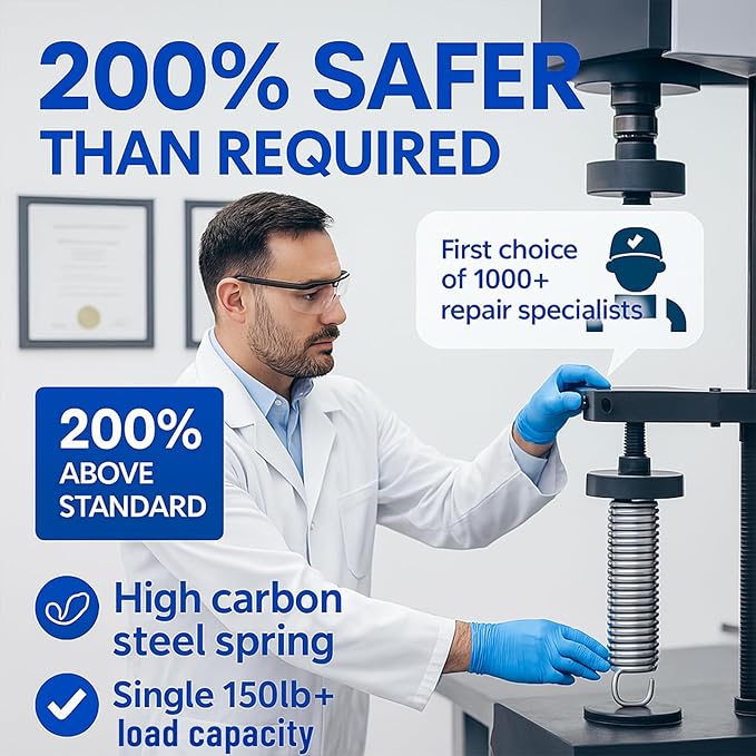 - DESIGNED FOR HEAVY-DUTY USE: Lab-certified with less than 2% loss of elasticity after extreme pressure testing, commercial-grade elasticity at a household price! Includes reinforced T-hook tool for individual spring changes in less than 30 seconds, saving up to 80% of time