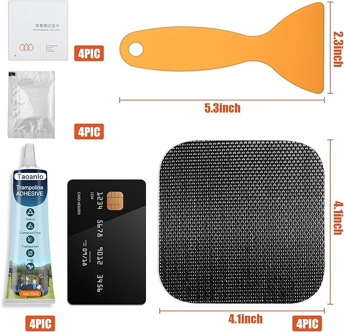 - Secure & Effective: 4.1'' x 4.1'' square trampoline mat patches, Matches most existing trampoline mat material. Will patch any hole size between 0 - 3.5 inches.