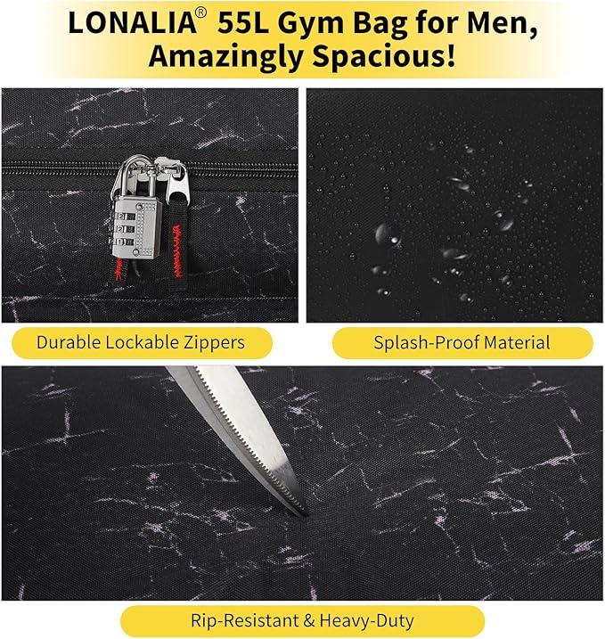 55L Large Gym Duffle Bag for Men - 22 inch Men's Sports Bag Heavy Duty Duffel Bag(Marble Black)
