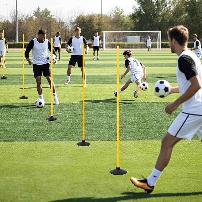 - 【Versatile】These slalom poles are ideal for group training for coaches and athletes, or for individual practice in the backyard. It is also an excellent gift for training agility and reaction speed.