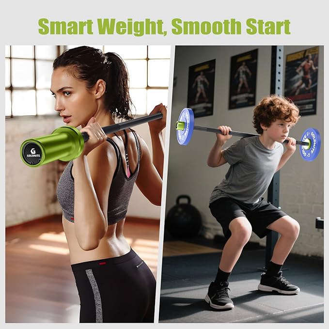 • Beginner-Friendly Multi-Scenario Versatility: From bedroom yoga spaces to garage gyms, GOLDNITE 4ft compact mini barbell bar adapts to cross-training, youth fitness programs, women's strength circuits, and travel workouts. Includes various vibrant colors (blue/pink/red) to match personal style, with sturdy metal to withstand regular use and maintain performance over time