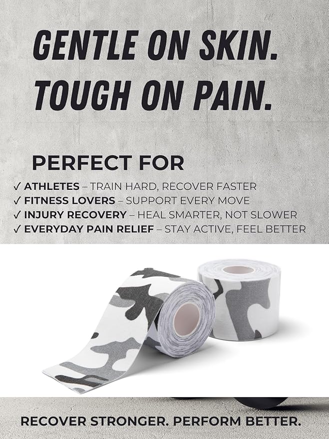 - Kinesiology Tape for Muscle Support – Premium athletic tape that Supports Muscle & Performance. Ideal as knee tape for men and women, kt tape for foot, and kinesiology tape for knees, offering excellent support during workouts.