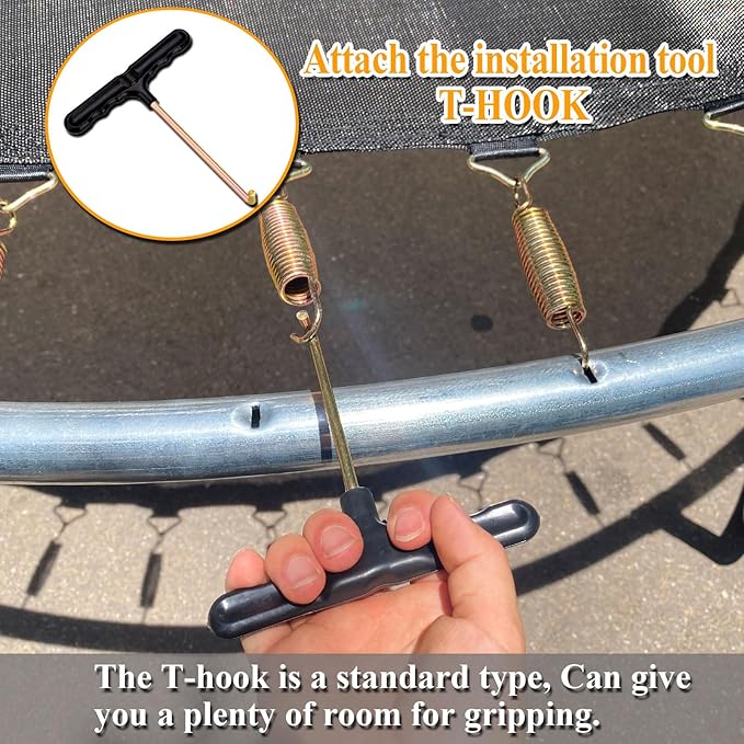 - Service Guarantee: Each package contains 1 trampoline mat and 1 T-hook spring pulling tool to make the installation process easier and more convenient. With instructions.