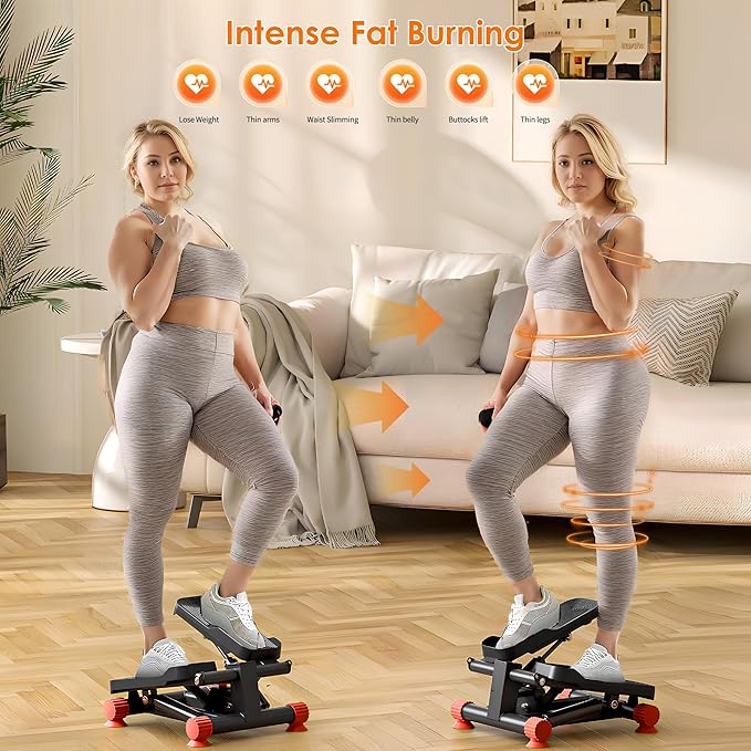 - FULL-BODY WORKOUT IN ONE MACHINE: Strengthen and tone your legs, glutes, arms, and core with this versatile mini stepper. The included resistance bands add upper-body engagement, turning a simple stepping motion into a complete cardio and strength-training session.