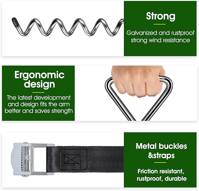 - 【CONVENIENT SET 】 4 pcs anchors, with 4 straps, 1 adaptor, and a T hook, it will make it super easy and convenient for you, ideal for home or outdoor use.