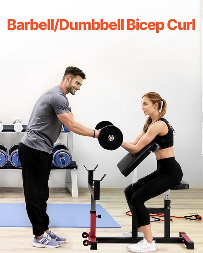 VEVOR Preacher Curl Bench, Strength Training Biceps Machine, Max load 440 LBS Home Gym Equipment, Seated Arm Isolated Barbell Dumbbell Bicep Station, Adjustable Weight Benches for Home Gym