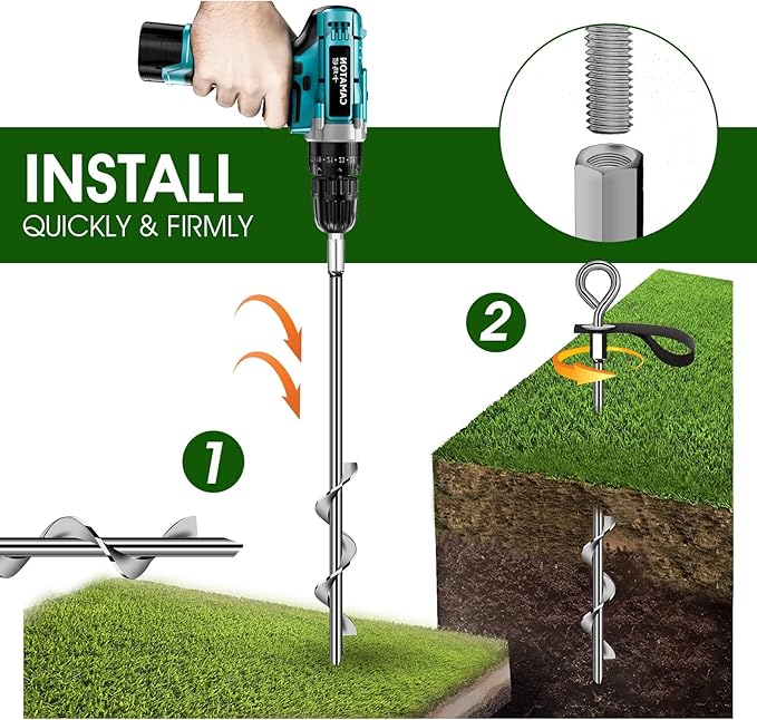 - 【INSTALLED BY DRILL OR MANUAL】With the provided T-wrench and 14mm adaptor, these anchors can be easily installed by drill or hand rotated.