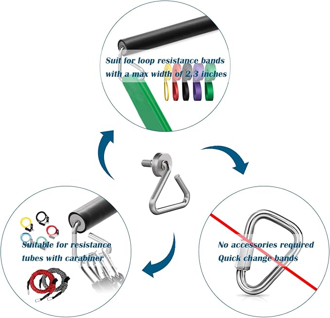 - [Perfect Applicability] - No additional accessories are required. Easy to connect loop resistance bands(max width: 2.0in) and other bands with carabiners. Convenient and quick to change weight.