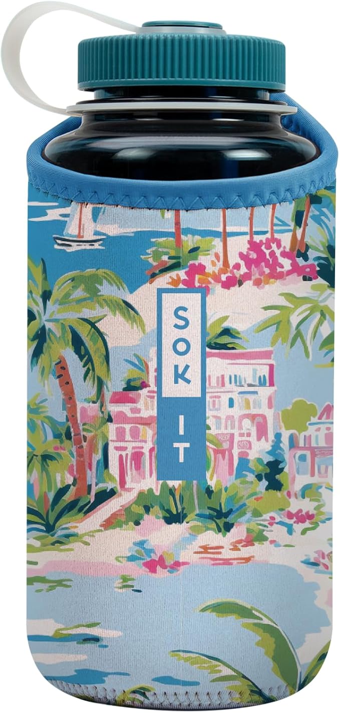Sok It BotlSok Water Bottle Sleeve Insulated Neoprene Cover (Beachside Bliss, Fits 32oz Nalgene)