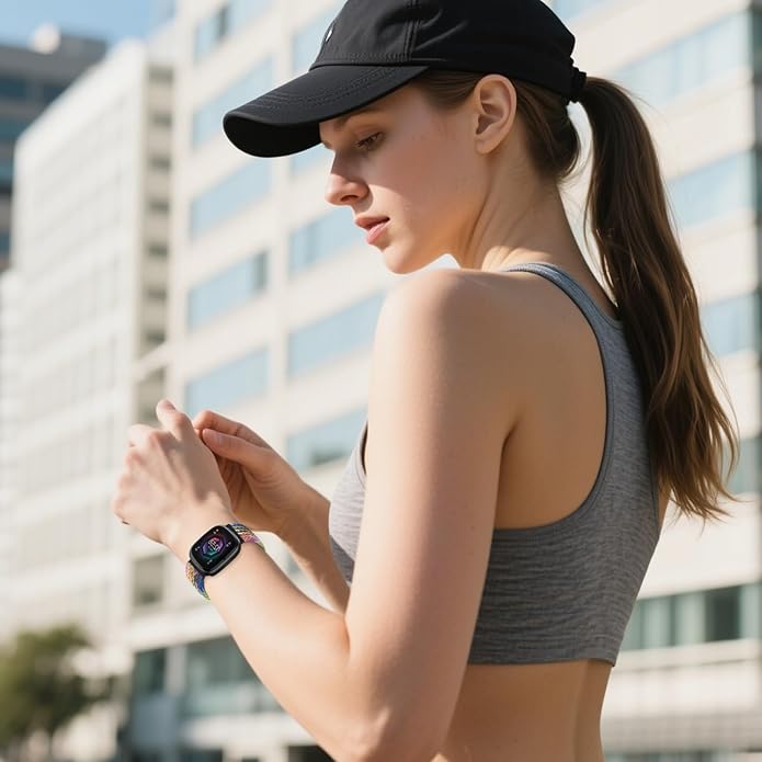 • [Special Material]:The Versa 4/Versa 3/Sense 2/Sense band is made of high-quality braided stretchy nylon material.When you touch it,you can feel it is very soft and breathable.When you wear it while exercising,you won't feel restrained or hot.And it is both sweat and water resistant.