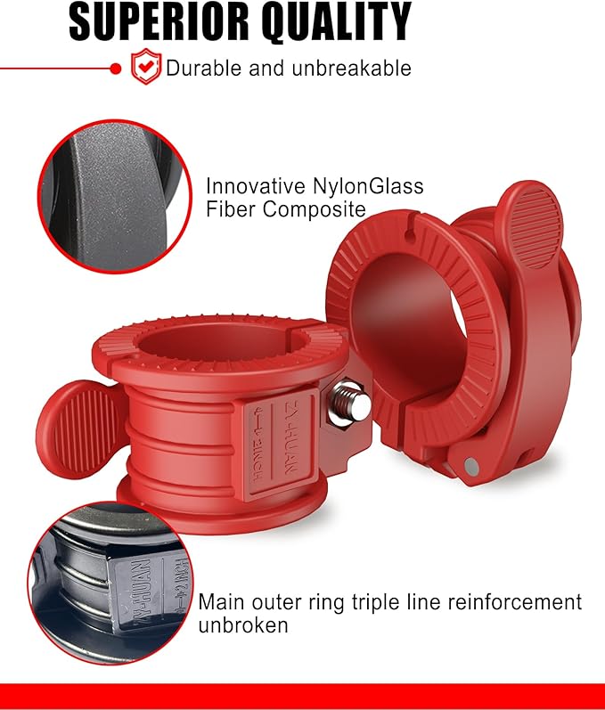 - ✔LIFT SMART, LIFT SAFELY: Your safety is critical when lifting heavy weights. That's why our 2 inch barbell clamps are as strong as tanks - forged from nylon for durability. Every inch of our gear is precision-engineered to lock the weight plates into place, creating just the right amount of friction to prevent slippage without slowing you down.