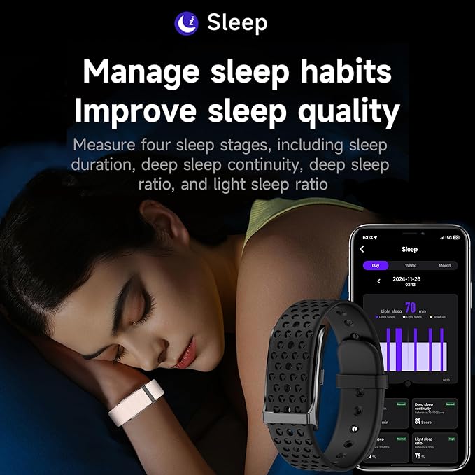 - More Practical Functions: In addition to measurement body data, the smart health wristband also features women's health measurement (physiological period), vibration reminder for incoming calls and messages, smart reminder (sedentary, alarm clock), do-not-disturb mode, find device, photo, etc, which makes it a better all-around way to take care of your health.