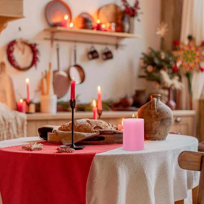 - Simple Pink Colored Decor: The unscented pink pillar candles are perfect addition of the holiday season to the decorated table.