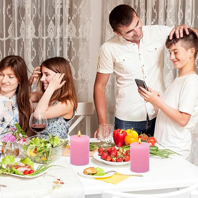 - Many Decorative Purposes: The unscented and elegant pink pillar candles are perfect for romantic dinners, power outages or simply to add warm light to a dark night.