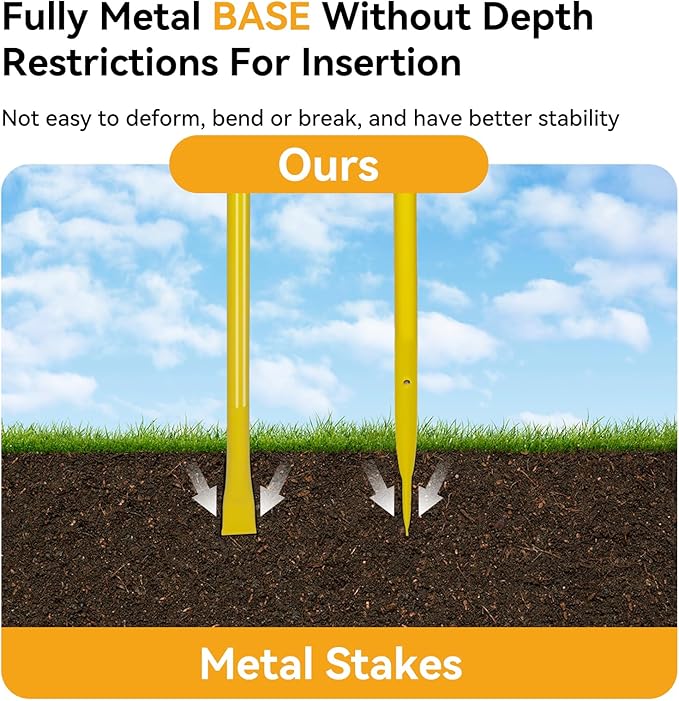 - ๐๐ง๐ซ๐ข๐ฏ๐๐ฅ๐๐ ๐๐ญ๐๐๐ข๐ฅ๐ข๐ญ๐ฒ:Our extended metal base (not plastic like common models) has a flattened tip for easy insertion into soil or sand, with depth adjusted to terrain softness. Built to resist bending and breaking, it stays firmly in place even when hit by frisbees, ensuring uninterrupted fun for you and your companions.