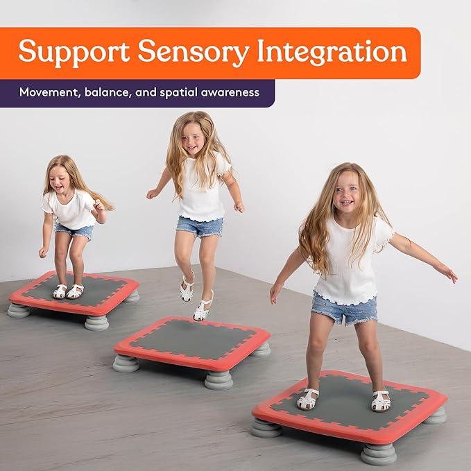 - Gross Motor Skills – Whether they’re bouncing, balancing, or leaping into action, kids will naturally develop coordination, balance, and body awareness. It’s a fun and engaging way to support gross motor development—perfect for playrooms, therapy spaces, or even as an exercise trampoline for gymnastics equipment for kids!
