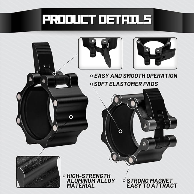 - Easy to Use: The clamps have a smooth open-close design that allows for quick one-handed operation, improving workout efficiency. The clamps have strong magnets, allowing them to securely attach to the squat rack for easy access.