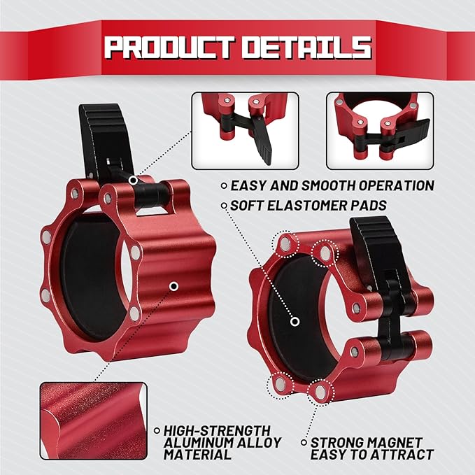 - Easy to Use: The clamps have a smooth open-close design that allows for quick one-handed operation, improving workout efficiency. The clamps have strong magnets, allowing them to securely attach to the squat rack for easy access.