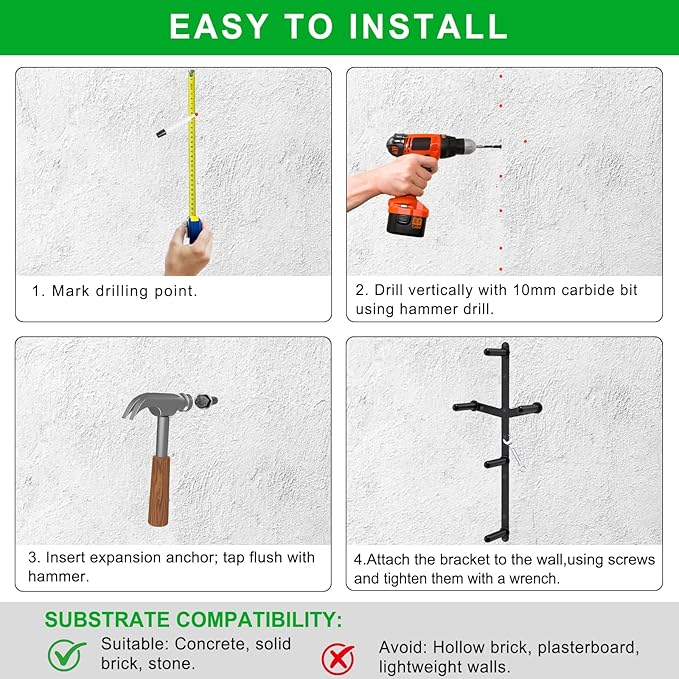 - "Quick Installation & Universal Use: Includes 9 concrete/wood screws for effortless wall mount weight rack setup.Substrate Compatibility: Suitable: Concrete, solid brick, stone. Avoid: Hollow brick, plasterboard, lightweight walls"