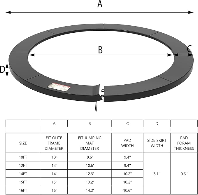 - 【Excellent Protection And Bumping Experience】Our trampoline safety mat covers exposed trampoline springs and provides effective cushioning for the user. Made of thick EPE closed cell foam, it can protect your children and family members from injuries. As a result, user safety and bouncing experience can be effectively ensured.