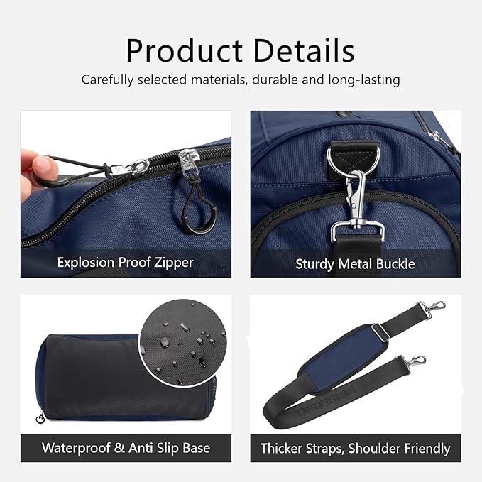 - MULTIFUNCTIONAL: It can be used for gym, sports, fitness, workout, travel, camping, hiking, cycling trip and other outdoor activities. Also good as a weekender, luggage, carry-on. The adjustable and removable shoulder strap offering flexibility for hands-free experience or a quick grab-and-go option.