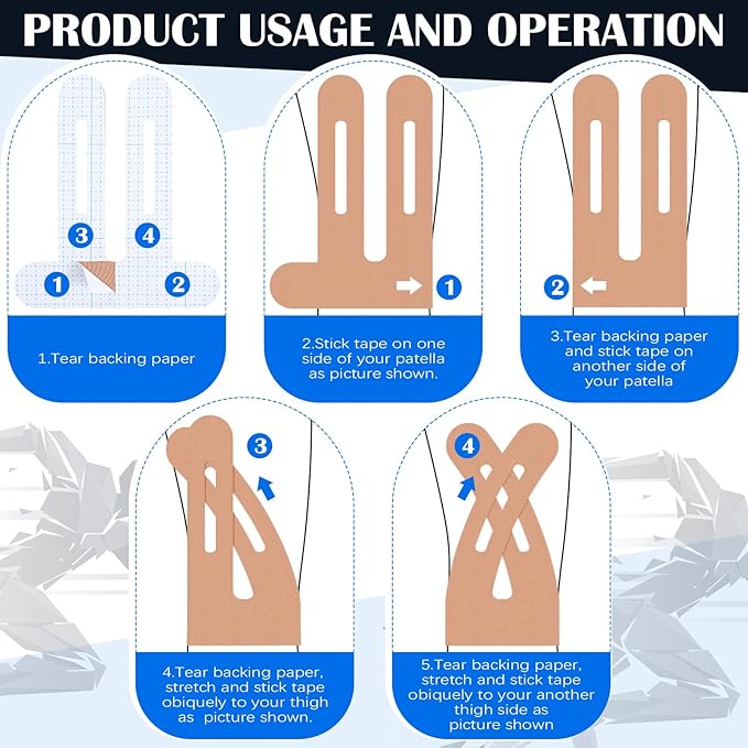 - Precut Knee Support Tape: our waterproof kinesiology tape for knees are typically thin and flexible, providing comfort during exercise without restricting movement: with a zoned peel-off design, the tapes fit perfectly around the knee, allowing you to focus on your workout