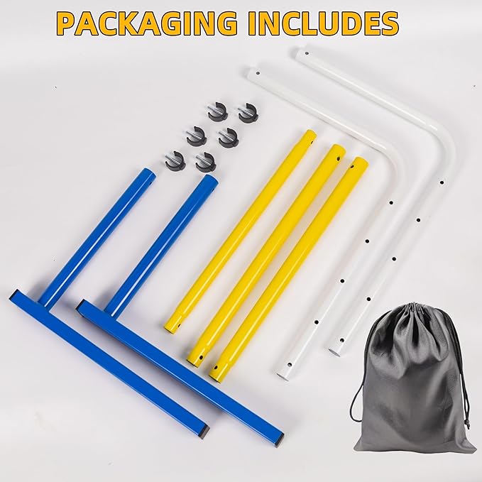 - 【Detachable & Portable】Each hurdle training equipment easily disassembles for compact storage and transport, and includes a convenient carrying bag for hassle-free mobility.The assembly process is simple and tool-free, making it incredibly convenient.