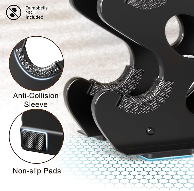 - Stable A-Frame Weight Stand:Triangular structure ensures even weight distribution and better balance. Prevents tipping and keeps your dumbbells secure, even on carpeted floors.
