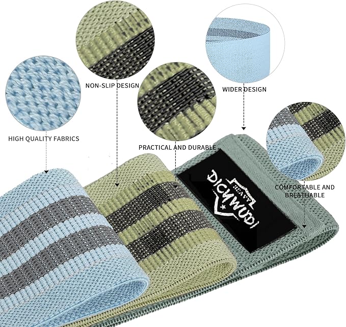 - đĄ ă3 RESISTANCE LEVELSăThere are 3 different color resistance bands, the same size and different strengths. The cloth resistance bands provides greater flexibility and more sports selectivity for your exercise.