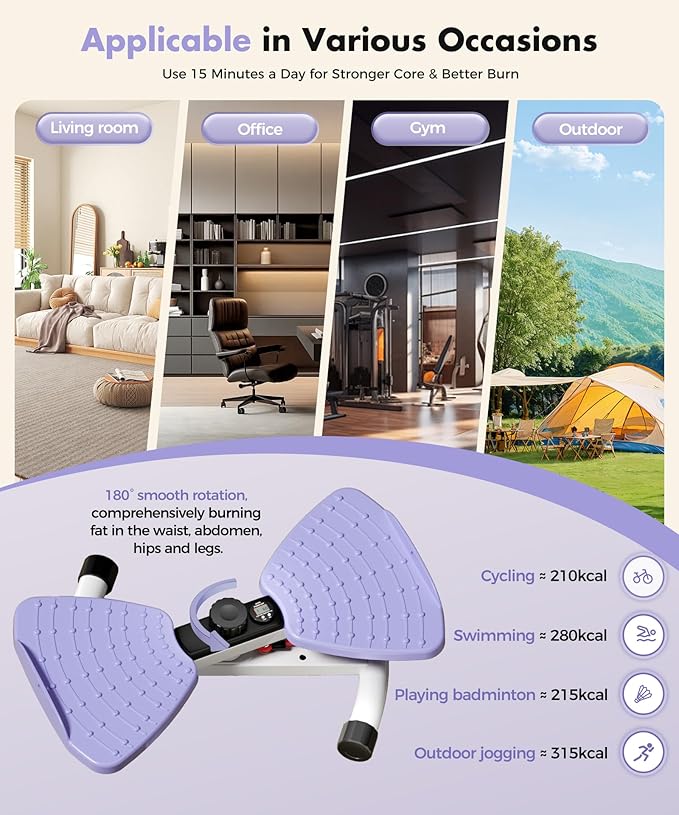 - 【Smart Digital Counter】Exclusive smart system auto-tracks reps and records workout time in real time, letting you master your training progress precisely. Say goodbye to manual counting—this ab twister board keeps you on top of every workout.