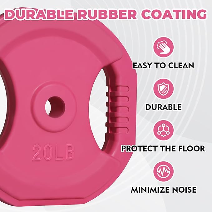 - Easy Grip: Rubber weight plates provide a secure and comfortable grip, making it easy to handle during workouts. Designed with square and rounded corners, the weight plates are less prone to shifting during use.