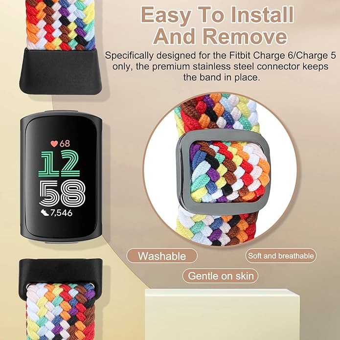 - 【Easy to Install】Braided bands are equipped with connectors at both ends, seamlessly fit your Charge 6/Charge 5, and firmly connect your watch. No tools are required, installation is simple and direct, and it can be removed with a light click.