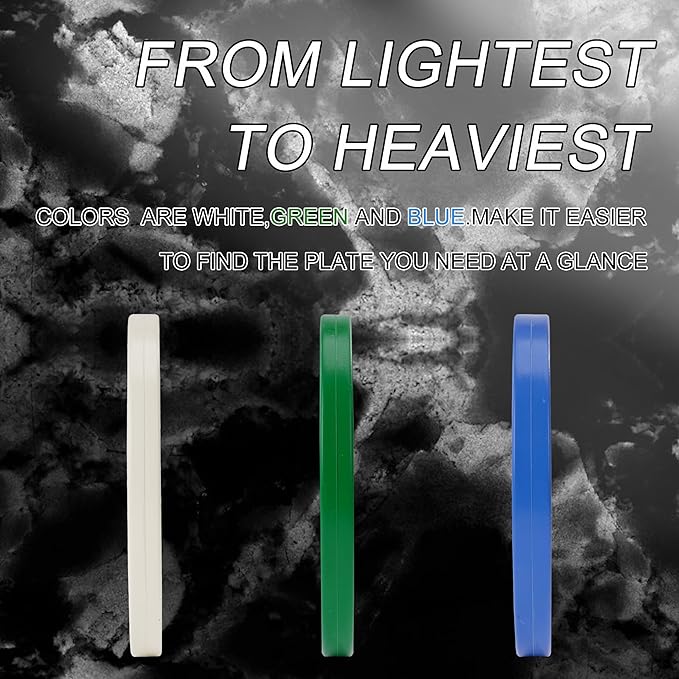 - 【Color Coding】The color coding on the bumper weight plate allows you to easily identify the weight plates with different weights, which is faster when changing the weight