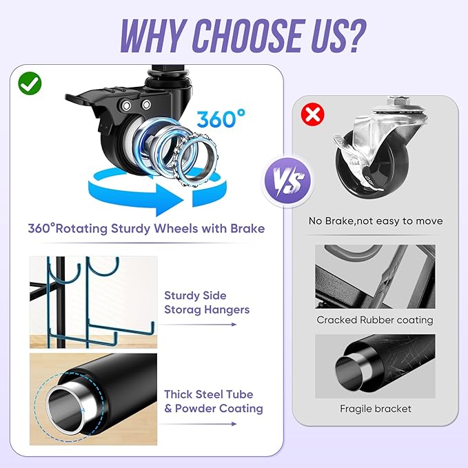 - 【Movable & Fixed Available Storage Rack】 : Our dumbbell set with rack is equipped with 4 silent universal wheels (including two with brakes) for effortless maneuverability, allowing you to smoothly reposition it wherever needed. Additionally, we provide optional fixed feet that can be installed as required, ensuring stability and preventing wobbling on uneven surface