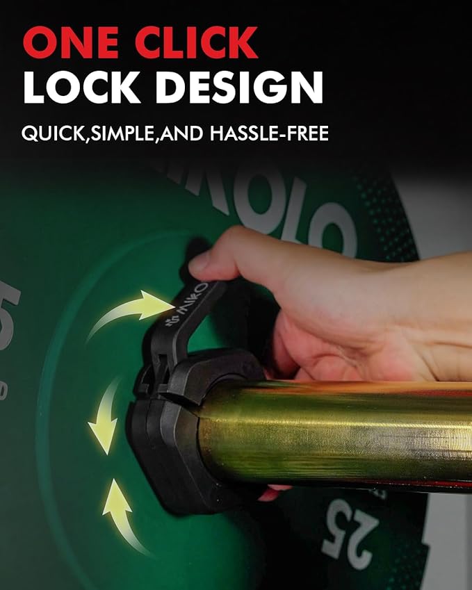 - EASY TO USE: MIKOLO Olympic barbell clamps feature a secure locking mechanism for quick installation and release—saving you time and keeping your workout momentum strong. Perfect for both home and commercial gyms