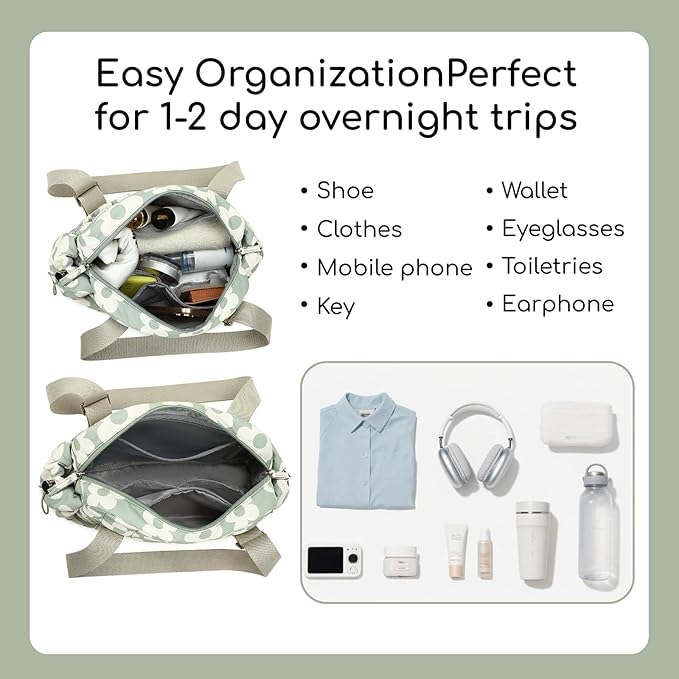 • 【Adjustable and Versatile–Multi-Purpose Use】 With a adjustable shoulder design that supports various uses, this women gym bag is versatile enough for gym sessions, casual handbag, crossbody bag or as a weekender bag. The adjustable strap and durable construction make it ideal for daily use, with a carry on tote option for enhanced convenience. Suitable for fitness enthusiasts or anyone seeking a practical and stylish bag.