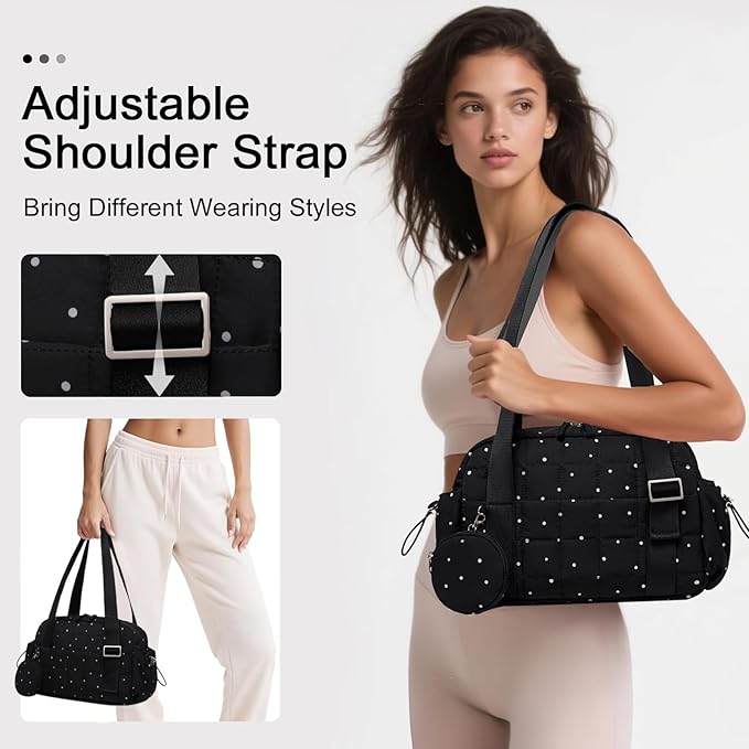 • 【Adjustable and Versatile–Multi-Purpose Use】 With a adjustable shoulder design that supports various uses, this women gym bag is versatile enough for gym sessions, casual handbag, crossbody bag or as a weekender bag. The adjustable strap and durable construction make it ideal for daily use, with a carry on tote option for enhanced convenience. Suitable for fitness enthusiasts or anyone seeking a practical and stylish bag.